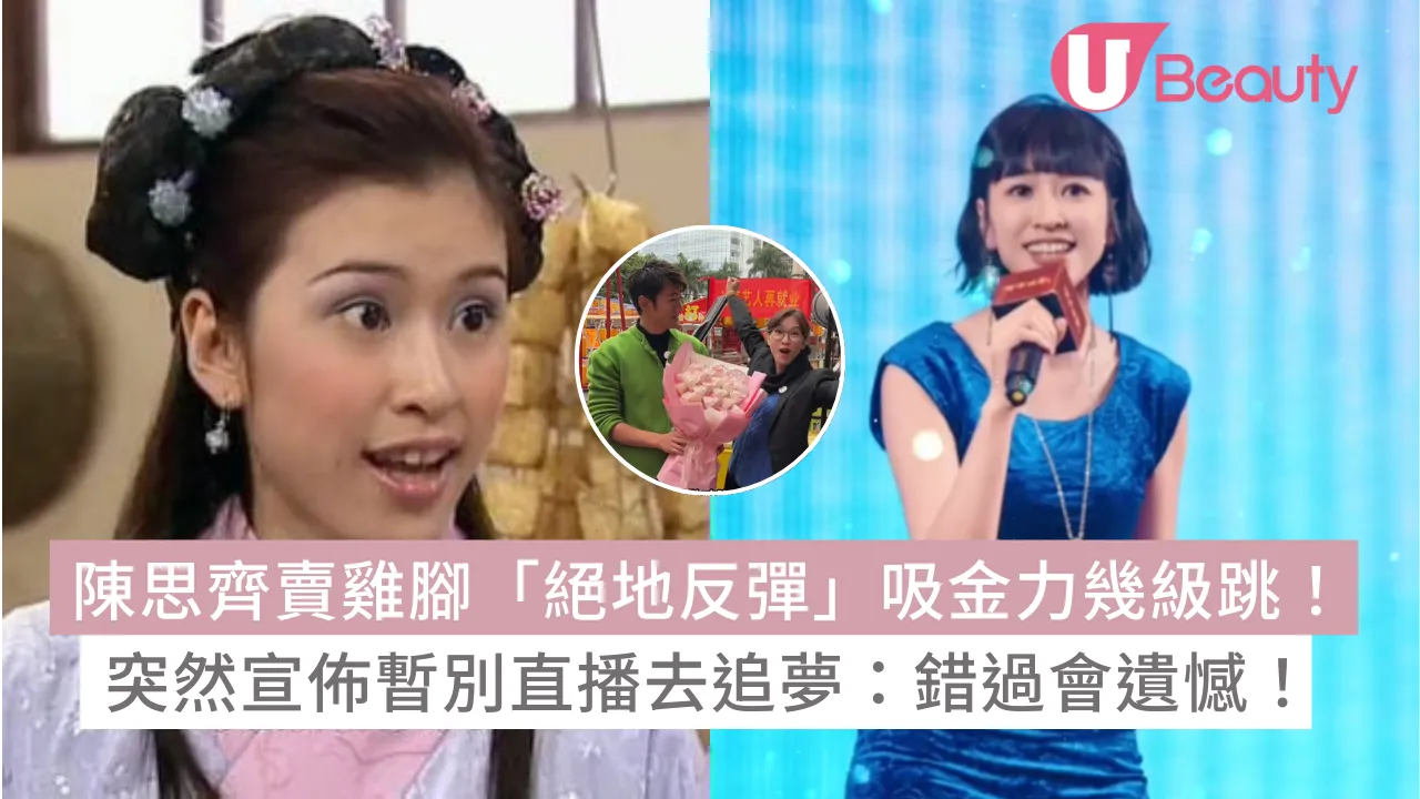 現年43歲的前TVB藝員陳思齊,雖然擁有一張童顏臉,但入行多年星途平平,只因常出演古裝劇集,而被外界稱為「御用丫鬟」。自從2013年離巢後,她曾轉行做音樂治療及香薰按摩師,近年更北上發展,憑住「賣雞腳」殺出一條血路,吸金力驚人。正當大家以為她事業「絕地反彈」之際,她最近竟然宣佈暫別直播界,更坦言有更重要的事情要追求?