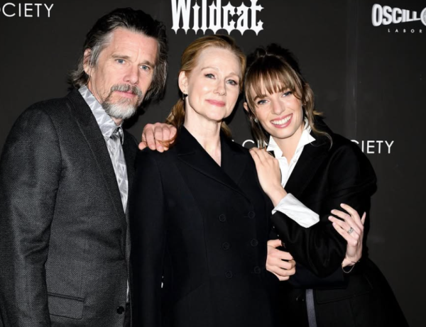 Maya選擇了一襲簡約的白色婚紗,最吸睛的是外搭一件 「超有存在感」的羽毛冬裝外套,在紐約寒冷的二月天裡的「最美新娘」。婚禮現場最動人的瞬間,莫過於 Maya 的星爸星媽—— Ethan Hawke 與 Uma Thurman 的驚喜現身。雖然這對昔日的銀色夫妻已離婚多年,但為了寶貝女兒的幸福,兩人罕有地大方同框,55歲的 Uma Thurman 穿上水藍色長裙,優雅依然,與身穿全黑西裝的 Ethan Hawke 一同送上祝福。