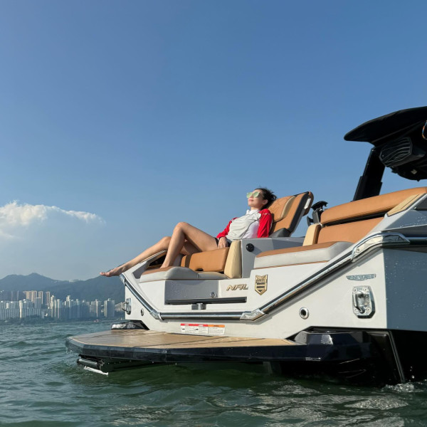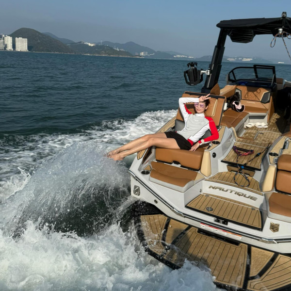 楊秀惠在社交平台上分享自己乘坐私人遊艇出海,從照片中可見,楊秀惠所坐的私人遊艇相當精緻奢華,她身穿一白紅色的長袖防曬衣和黑色短褲,戴著墨鏡倚坐在遊艇尾部的梳化位,大晒白滑大長腿,享受陽光和海浪,非常愜意!