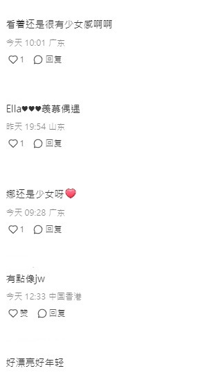 網民除了大讚Ella美貌外,有網民更表示想念她在舞台上的樣子,希望她能復出唱歌,不過Ella則以「maybe one day(也許有一天)」回覆。早在今年一月,有網民在Threads上發文表示聽到Ella的歌曲後,勾起以往的回憶,希望她再開演唱會。Ella其後親自回覆:「其實我有時都會好懷念以前唱歌嘅時候,畢竟人生有好多唔同嘅階段,暫時呢個階段可能未必有機會再同你見面。睇到你呢個留言我真係好窩心!希望你有一個美好的2026年!」暫時一詞也為不少粉絲帶來希望,期待有天她能重返樂壇!