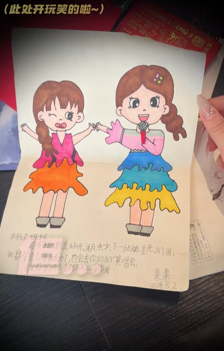 早前,阿嬌在社交平台拍攝開箱粉絲禮物的影片,感性答謝粉絲多年來的支持與厚愛。禮物中不乏非常年輕粉絲的心意,其中一份由名為「小蘋果」的小粉絲與媽媽共同撰寫的信件,不過當中的一句話,就瞬間打破溫馨的氛圍!原來小粉絲在信中稱呼阿嬌為「鍾欣潼阿姨」,更連好姐妹阿Sa也被稱為「蔡卓妍阿姨」。一向擁有凍齡神顔的阿嬌隨即「變臉」,開玩笑地表示不滿,更對著鏡頭隔空「教育」小粉絲:「我要教育一下你哦!什麼叫阿姨?你媽媽沒有跟你說,姐姐不喜歡你這麼稱呼我嗎?」這段半玩笑、半認真的真性情反應,盡顯阿嬌可愛直率的一面!