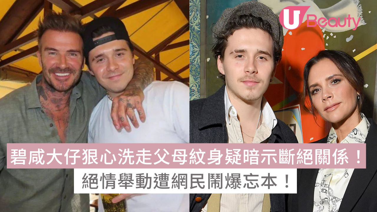 據外媒報道,Brooklyn近日與老婆Nicola Peltz現身洛杉磯時,被發現右手臂上的「DAD」的船錨紋身,已被海星及水泡圖案遮蓋,有知情人士指出,Brooklyn已接受激光療程,去除與碧咸相關紋身。其實這已經不是Brooklyn第一次洗掉紋身,他在胸前向媽媽Victoria致敬的「mama's boy」紋身,早前已被更大的花卉圖案遮蓋,疑似暗示與父母關係「無彎轉」。