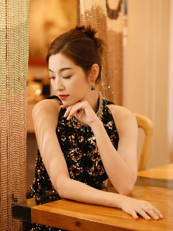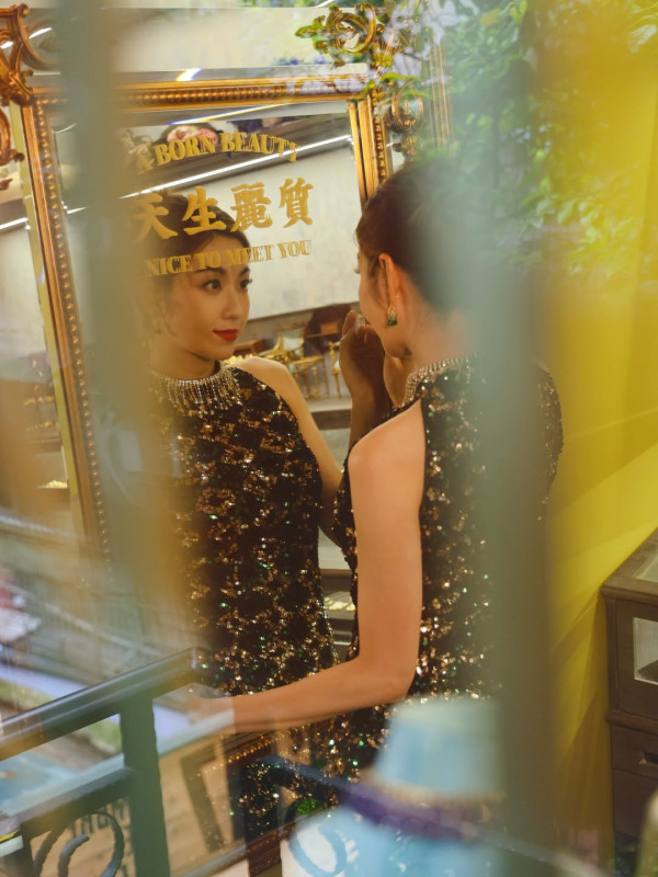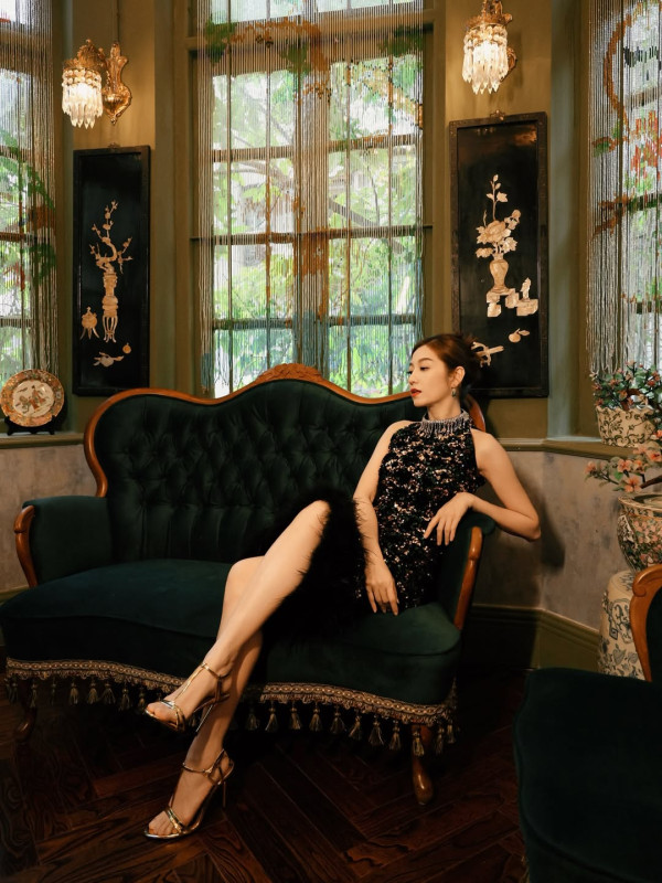 照片中,Yoyo將一頭長髮乾淨俐落地盤起,完美展露如雕刻般精緻的下顎線。她擺出高冷的姿態,舉手投足間流露出一種與生俱來的高貴感,散發濃郁女人味。她又擺著不同姿勢,時而低頭沉思,彷彿藏著萬千心事;時而眼神嫵媚,在光影的襯托下散發出成熟女性獨有的韻味,宛如《花樣年華》中的張曼玉。