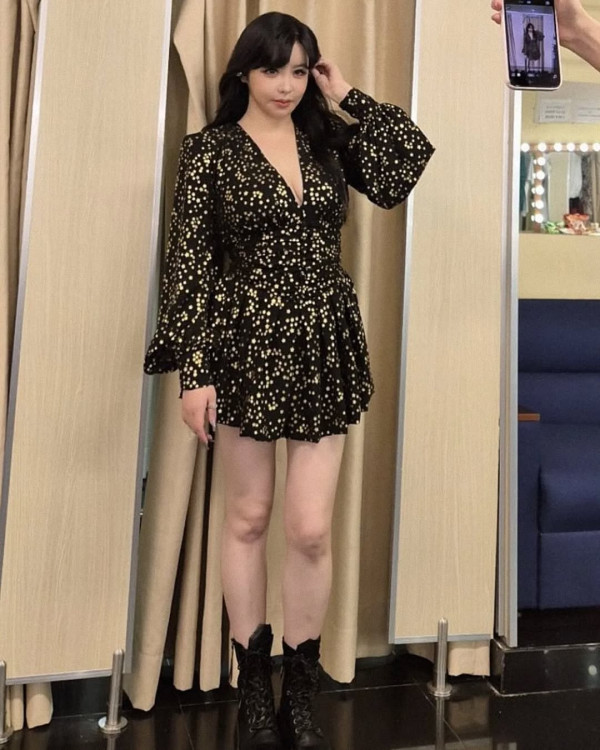 朴春(Park Bom)曾在個人社交網上分享自拍照,相片中的朴春一改昔日衣着打扮,不僅換上了all back黑髮的新造型和畫上黑色全框眼線,還穿起綠色緊身小背心大曬性感,傲人上圍一覽無遺。