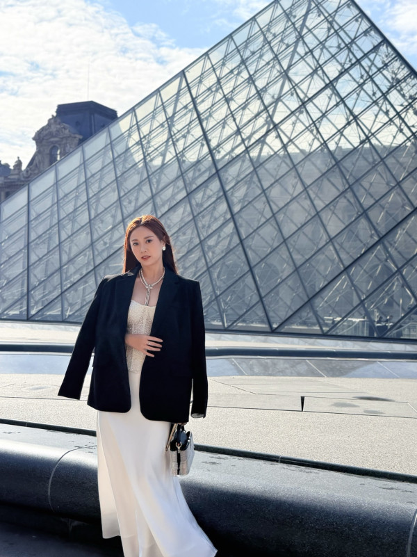 日前朱晨麗在社交平台分享多張於羅浮宮拍攝的靚相,引起不少網民關注。照片中見她以一身黑白造型亮相,身穿白色低胸 tube dress,外面搭配黑色西裝外套並配上閃亮的鑽飾,整體造型氣場十足。另一輯相則是穿上黑色露背晚裝長裙,舉手投足之間散發出如同貴婦般的氣質。不少網民都大讚她狀態極佳,而她在照片下亦有留言,大讚品牌今次以「未來伊甸園」為主題的設計十分驚艷,形容整場騷充滿夢幻氛圍,可見她對今次時裝秀相當欣賞。