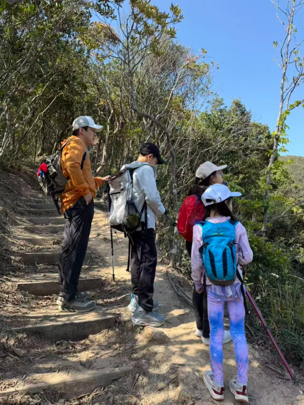 近日,郭晶晶與霍啟剛趁著周日風和日麗,帶著三名子女挑戰衛奕信徑。一家五口裝備齊全,穿梭於山林,夫婦二人更分工合作,化身專屬攝影師為孩子捕捉童年瞬間。霍啟剛全程親力親為照顧子女,並刻意走在隊伍後方,緊隨孩子確保安全。郭晶晶感性分享,行山不僅是運動,更能引起孩子對植物、昆蟲的好奇心;霍啟剛則笑言這是最健康的「家庭樂」,再次展現出這對「豪門清流」最貼地的家庭教育。