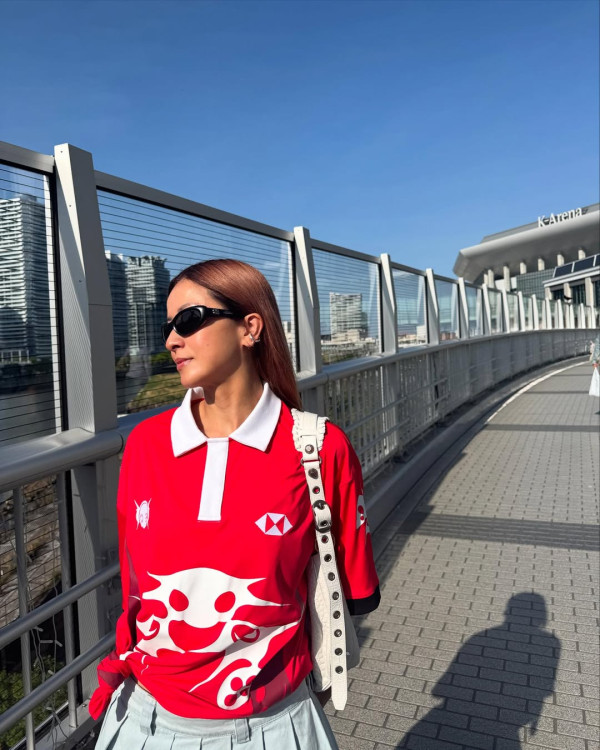 當日,徐濠縈展現了教科書級別的層次穿搭:白色上衣外搭藍色間條恤衫,巧妙利用腰帶勾勒身形,下身則配搭俐落的 7 分褲,整體造型既年輕又具隨性美。一向熱愛運動、擁有緊致好身材的她,穿起這套後生打扮完全沒有違和感,年輕感十足,與21歲、亭亭玉立的康堤不僅氣場相近,更被網民大讚:「這根本是兩姊妹吧!」