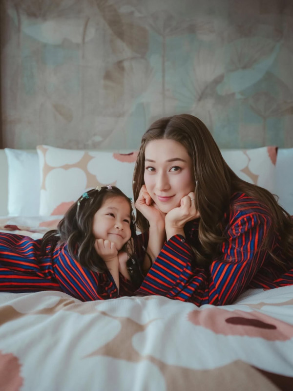 早前,Linda在社交平台發佈了一輯與 3 歲幼女 Anika 的母女寫真。照片中,兩人換上白色內搭與紅藍間條恤衫,更刻意梳起一模一樣的相同髮型,畫面既時尚又溫馨。年僅 3 歲的 Anika 面對鏡頭毫不怯場,Pose 多多且表現專業:時而頑皮地背對媽媽,時而深情托頭注視著 Linda,甚至還與媽媽優雅地對舉茶杯。這份可愛又淡定的表現,紛紛留言激讚Anika極具星味!