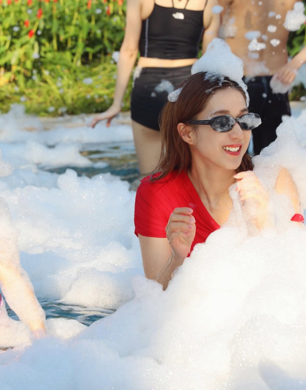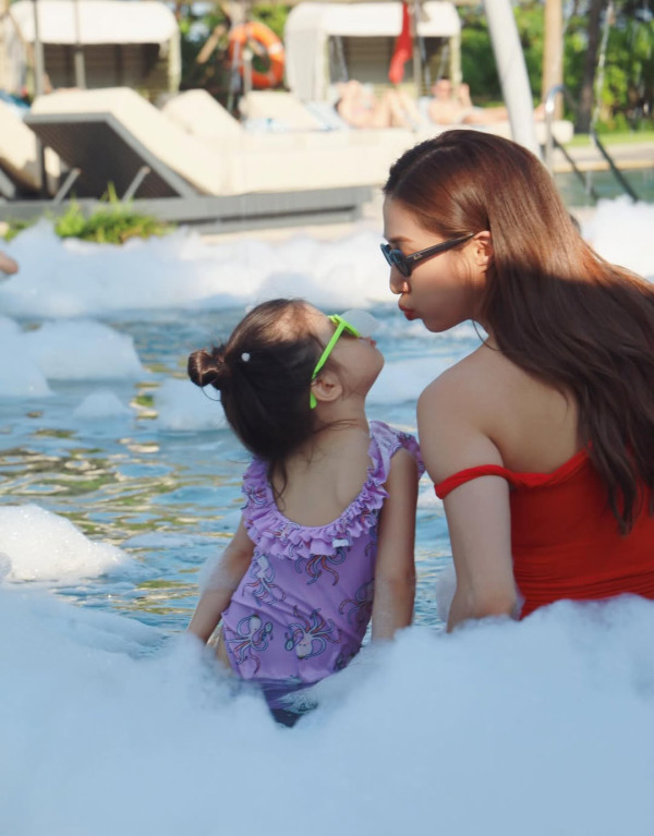 近日,Linda於社交平台大方分享一輯在越南度假的絕美照片!照片中的Linda換上一身亮眼的火紅色一件頭泳衣,與細女Anika在泳池中盡情享受泡泡派對,兩母女更調皮地對著鏡頭嘟嘴隔空親吻,畫面既溫馨又甜蜜!然而,最令網民嘖嘖稱奇的卻是Linda的逆天身材。即使已是三孩之母,Linda身上毫無一絲贅肉,肌膚依舊白皙緊緻,散發著由內而外的健康自信光采。