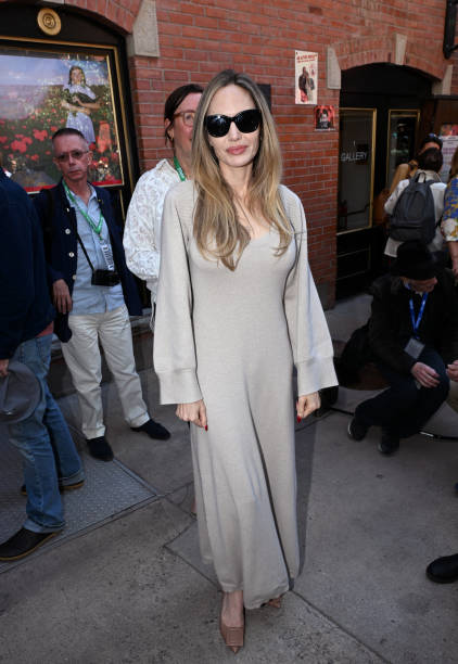 在《Eddington》的首映禮上,安祖蓮娜祖莉選擇了一襲由意大利奢侈品牌Brunello Cucinelli度身訂製的露肩裸色公主長裙,搭配大型鑽石飾物,早前她現身美國加州第40屆聖巴巴拉國際電影節(SBIFF)時,真空上陣以白色西裝外套搭配吊帶絲質長裙,完美展現她的好身材!