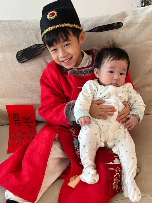 適逢新年,古巨基在社交平台首度曝光細仔正面照,並寫著:「Baby Kuderson 第一次同大家見面,弟弟仲同哥哥財神 Kuson 一齊向大家拜年。」照片中,大仔Kuson穿上喜慶的財神裝,緊緊抱著弟弟Kuderson,畫面溫馨指數爆表。首度露面的Kuderson完美遺傳爸爸的優良基因,擁有一雙精靈大眼與烏黑濃密的頭髮,無論表情還是長相都與古巨基如出一轍,不少網民都形容Kuderson為「迷你版基仔」!