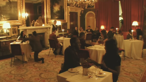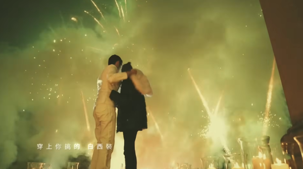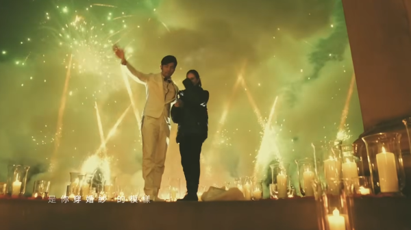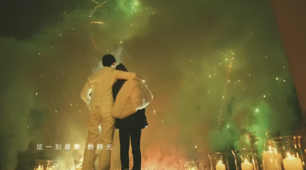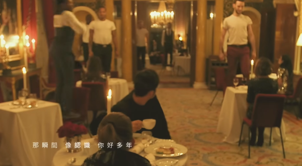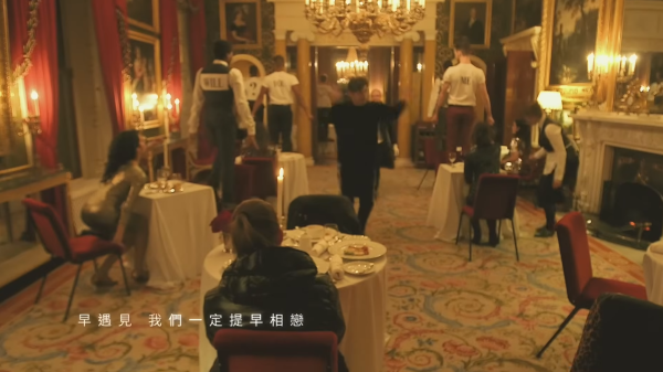 周杰倫對浪漫的極致追求在 MV 中一覽無遺,他在英國郊區租下一座古堡,並精心策劃了一場「沉浸式求婚」。為了不讓昆凌起疑,周董特別聘請了樂手、舞者,以及近百名臨演分別扮演服務生與食客。當昆凌走進餐廳,原本平凡的用餐場景瞬間變身,舞者們整齊劃一地排成「WILL YOU MARRY ME」的字樣。在求婚成功的瞬間,古堡外燃起璀璨煙火,兩人於金黃光影中深情相擁,現場更有夢幻馬車與燭光晚餐,排場完全是電影規格。