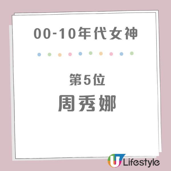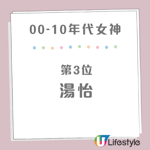 這個年代對 00 後來說最有記憶點,但選擇卻最令網民意外。原 PO 列出了 阿嬌(鍾欣潼)、李佳芯、湯怡、鄧麗欣(Stephy) 及 周秀娜。言區出現集體回憶潮,大批網民力撐陳法拉、官恩娜、梁詠琪及郭羨妮才是該年代的「神顏」代表,更有 90 後感嘆:「當年 TVB 仲係神仙打架,官恩娜個腰果眼笑得真係好甜!」