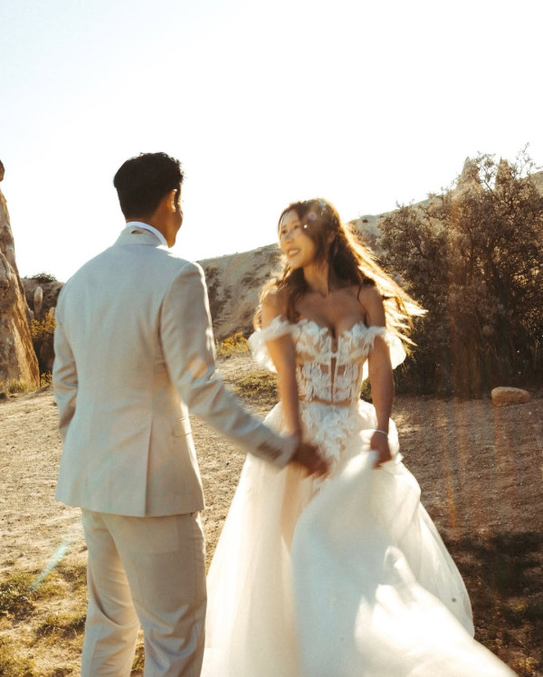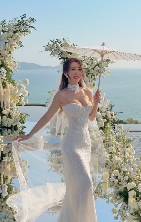 Alycia更忍不住在社交平台分享布吉婚禮的精彩片段。影片中的Alycia身穿低胸一字肩貼身拖尾婚紗,不但將其標誌性的豐滿上圍大方展現,貼身的設計更突顯出她的S形玲瓏曲線。她戴上唯美的純白頭紗,對著鏡頭不斷變換 Pose,舉手投足間充滿自信,臉上亦掛著幸福的笑容!