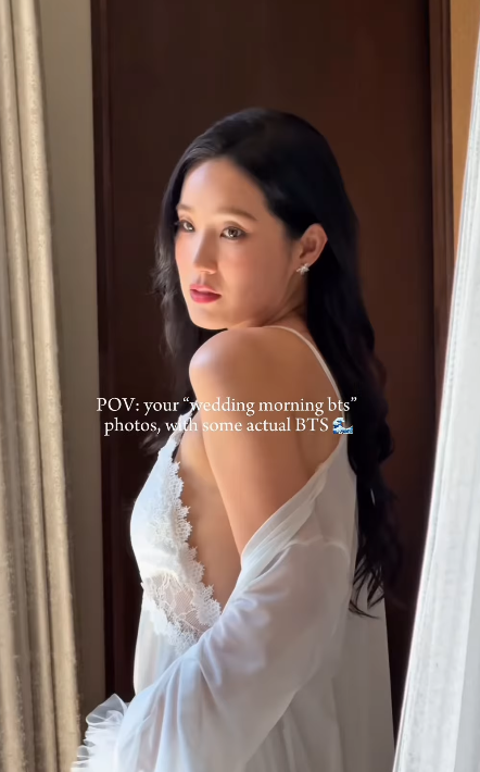 近日,Linna在社交平台分享峇里島大婚當日的美照。照片中,Linna眼神溫柔地凝視著即將穿上的夢幻婚紗,更情不自禁地用雙手輕輕撫摸婚紗的每一處蕾絲,彷彿在與這個重要時刻對話。她感性配文:「better late than never... and mornings should be slow, savoured, and dreamy 🤍…especially wedding mornings👰🏻♀️(遲到總比不到好……清晨就該慢下來,細細品味,充滿夢幻氣息……特別是婚禮的清晨)」。