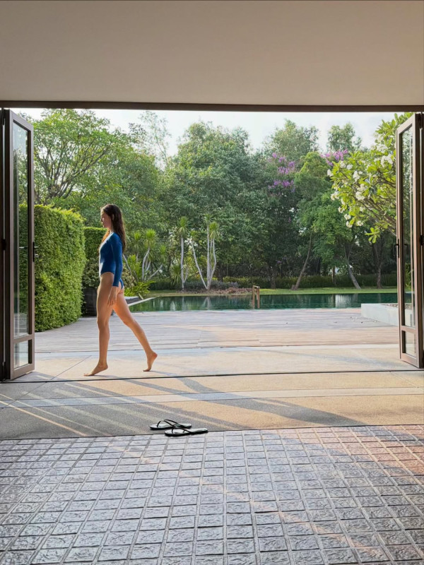 照片中,谷愛凌穿上純白極簡比堅尼,大晒運動員特有的結實肌肉與逆天長腿,展現出零贅肉的頂級線條。而平日以清純學霸形象示人的何超欣,罕有換上粉紅色火辣比堅尼,這套「粉紅戰衣」不僅襯托出她的豐滿上圍,更意外洩露她深藏不露的肌肉線條,勻稱體態絲毫不輸旁邊的谷愛凌。
