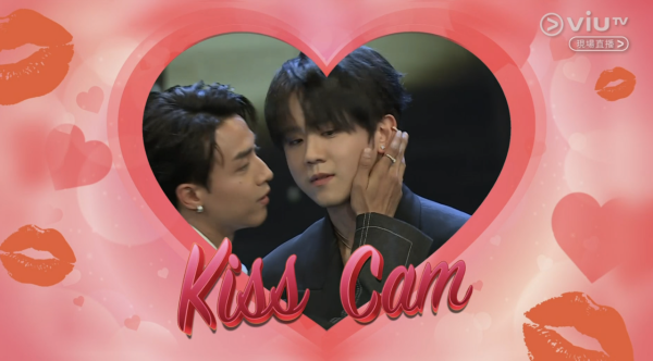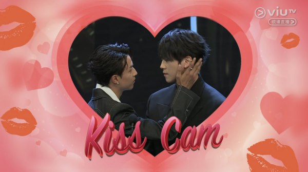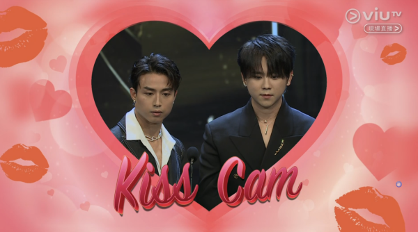 姜濤與Anson Kong也逃不過Kiss Cam,兩人見到鏡頭時﹐Anson Kong將手放在姜濤臉龐,並裝作熱吻,隨即引起現場起哄!