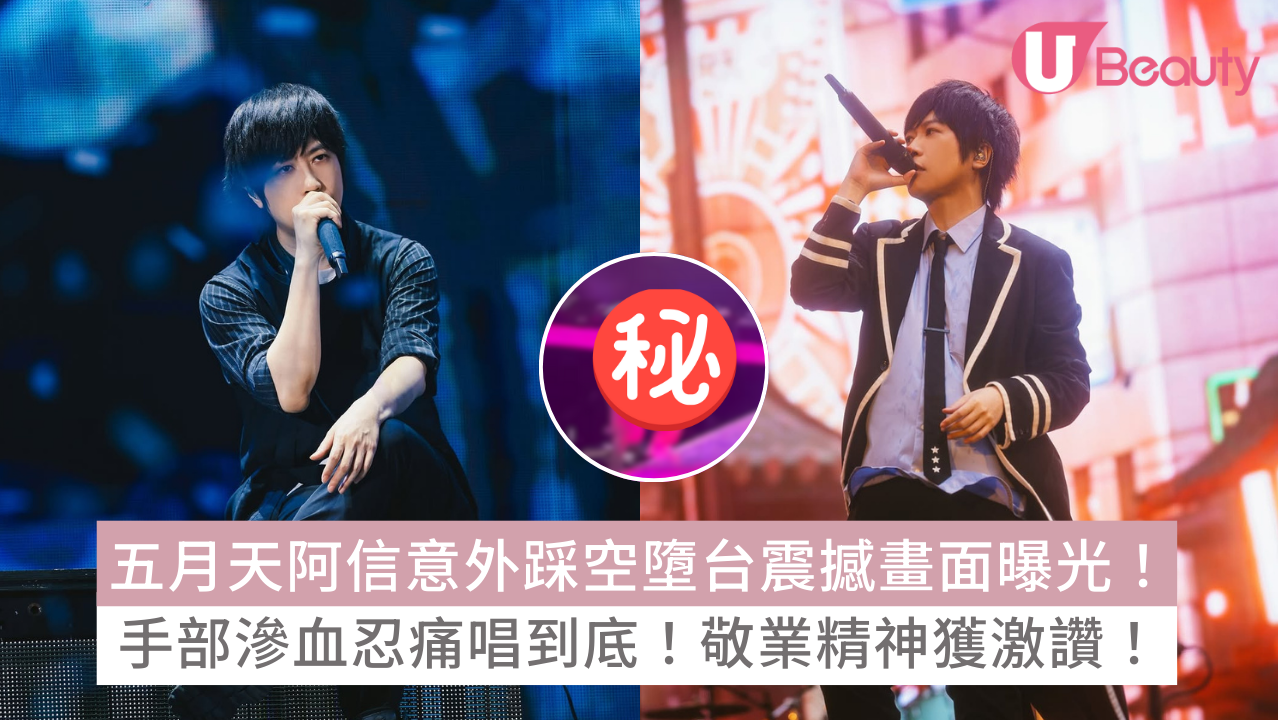 五月天主唱阿信在上海連開四場《F✦FOREVER 恆星之城》巡演,不料22日尾場時竟發生驚險意外。主唱阿信在熱情與粉絲互動時,疑因未察覺舞台邊緣而不慎踩空,頭部重撞音響後直接摔下台,驚悚瞬間遭網民拍下上傳,畫面極其震撼。令人心疼的是,阿信隨後馬上重返舞台,即使手部明顯損傷滲血,他也僅在傷口處進行簡單包紮,便面帶笑容繼續高唱,不因傷勢暫停演出,敬業精神獲網民讚賞!