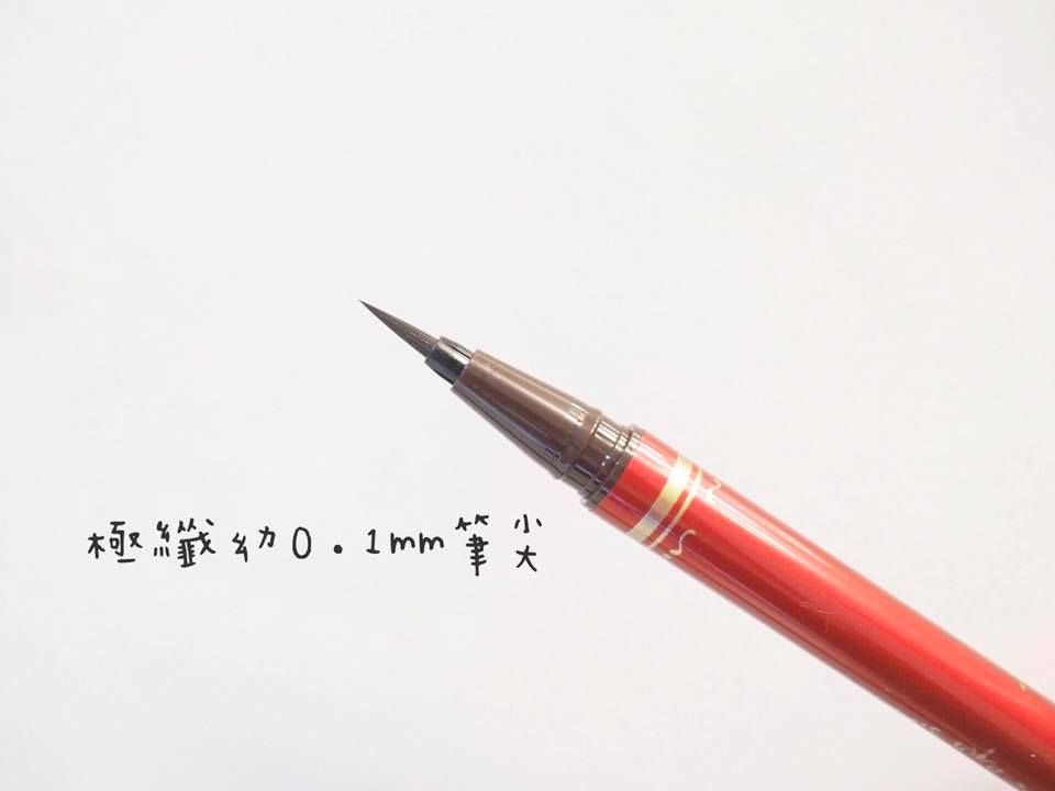 眼線液極纖幼0.1mm筆尖,毛質細軟且出墨流暢,輕易勾勒出細緻俐落眼線,另一配方中蘊含透明質酸,有效呵護眼周肌膚。