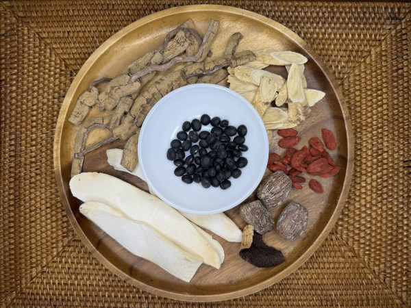 材料:巴戟30g、黃耆20g、黑豆15g、山藥30g、杞子12g、蜜棗3粒、陳皮1角