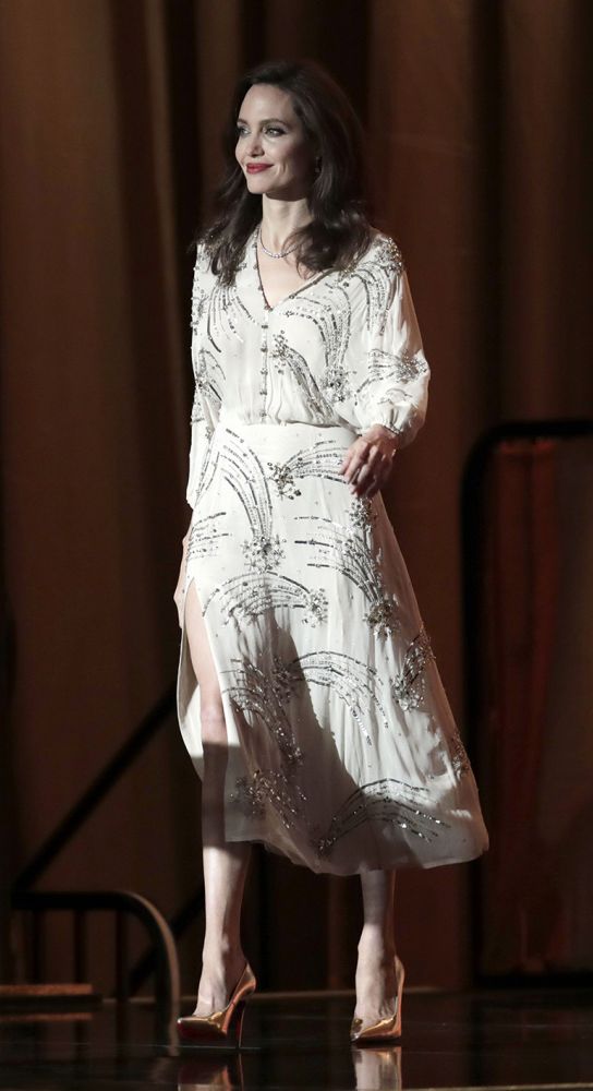 當Angelina與現場嘉賓和粉絲致意時,她也顯得很得體,簡直美得與電影劇照一樣。