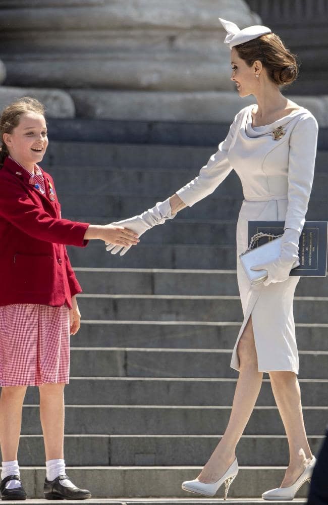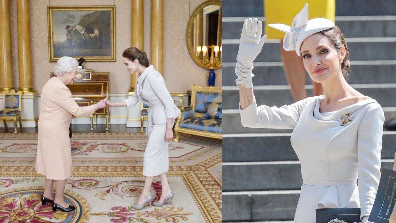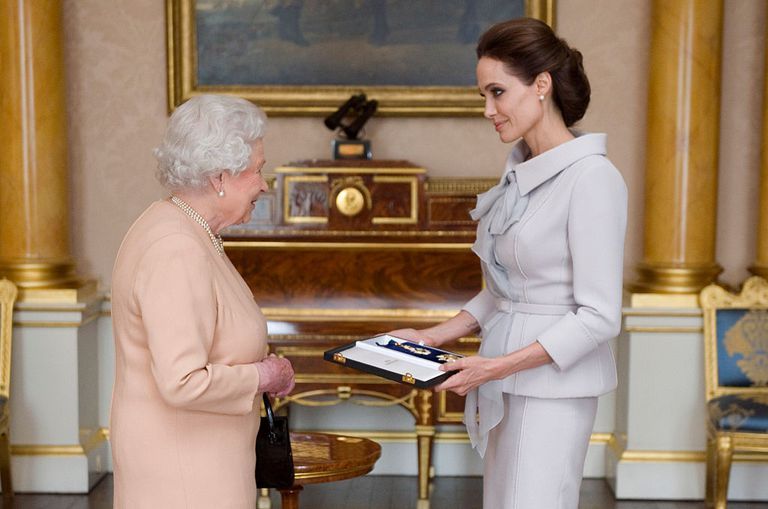 但由於Angelina不是英國人,也不是英國協成員國的公民,因此她不能在名字前面加上「女爵士」的稱號,因此英女王特別授予她榮譽女爵士的殊榮,Angelina也是好萊塢圈內第一位獲頒這殊榮的女星!