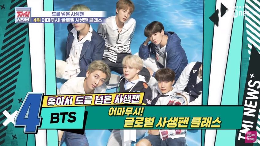 韓國節目《TMI NEWS》近日公開了「最恐怖私生飯」TOP 7,跟蹤、偷拍、電話奪命連環 call 、暴打經紀人等,各種為滿足自己私慾的「堪比恐怖片」的瘋狂追星行為,實在令藝人感到又愛又恨。