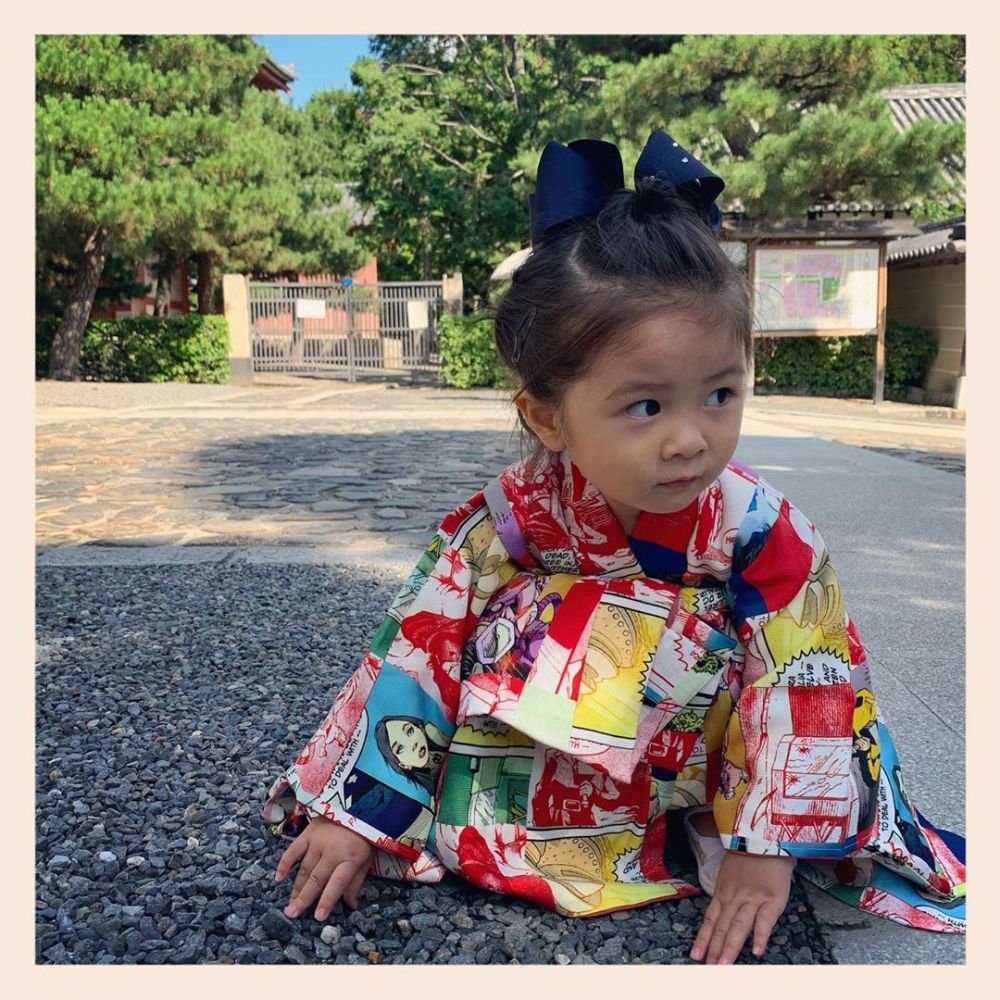 到3歲的她,擺脫了嬰兒的樣子,五官別緻可愛、笑容又燦爛,穿上日本和服後更有小美女模樣。