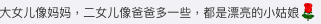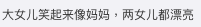 大女Chantelle和細女Charlotte一同紮起公主頭,分別換上了紅色和粉紅色套裝賀新年,非常可愛。雖然,兩女容貌被遮蓋,但不難發現兩名女兒臉型都相當精緻,鼻子高挺,完美遺傳了爸媽的高顏值基因。尤其是大女Chantelle笑起來的模樣更是與媽媽餅印樣,網民都紛紛留言大讚兩名女兒甜美可人、惹人喜愛:「大女兒笑起來像媽媽,兩女兒都漂亮」、「大女兒笑起來和媛媛一模一樣」、「大女兒像媽媽,二女兒像爸爸多一些,都是漂亮的小姑娘」、「兩個女兒真可愛」、「大寶長這麼高了呀,小孩子長的真快」。