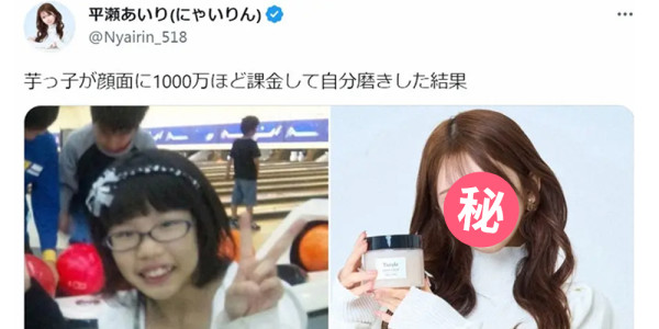 平瀬あいり透露,為了變美,在6年間花費了超過1000萬円(折合約59萬港元)整容。除了矯正牙齒外,平瀬あいり曾經接受割雙眼皮、開眼角以及顴骨縮小等手術,眼角、鼻子亦有調整過。平瀬あいり亦有在護膚保養和穿搭上下足功夫,努力鑽研化妝和穿搭技巧。從她的近照可見,現時的平瀬あいり擁有甜美可愛的樣貌,舉手投足散發自信優雅,讓不少網民震驚「整容真的可以改變人生」。