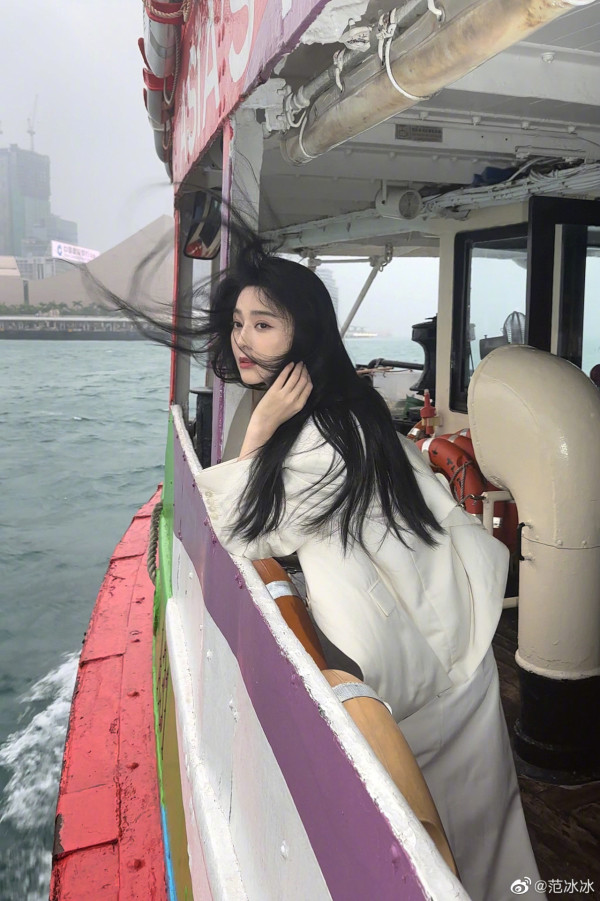雖然范冰冰在中國大陸受到封殺,但她在海外市場依然活躍,從電影到雜誌封面等都發現她的身影。最近她在微博上分享一段在香港輪船上拍攝的影片,寫下:「結束拍攝,在某書上撿到一個視頻,哪個同學,拍這麼好?」短片中,她一邊欣賞香港的美景,一邊投入拍攝工作。她身穿米白色套裝,一頭烏黑長髮飄逸,即使海風吹亂頭髮,仍無法掩蓋她復出時的好心情,顯得十分享受。及後,她也再分享了兩張擺拍的照片,並留言:「這個還有點帥,是怎麼一回事?」