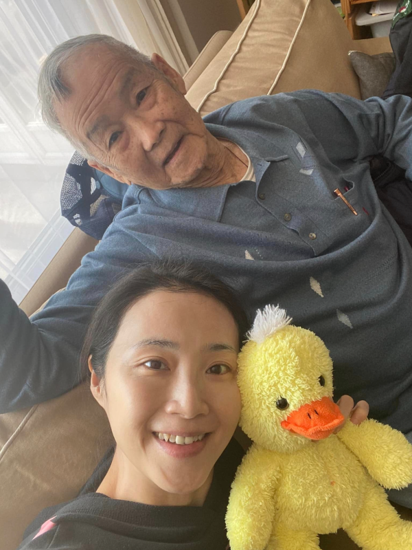 相片中一身居家服及素顏的她,靠在父親在梳化上拿著鴨子公仔一起拍照,二人笑得特別溫馨。相中Halina完全沒有任何化妝,全素顔的她和往日在幕前看到的她完全不同,網民指差點認不出她來,但親切的笑容和爆牙卻依舊。