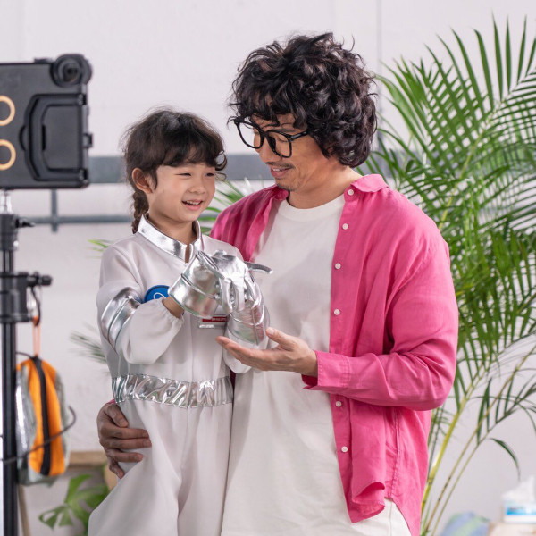 近日有廣告商邀請6歲的Kakaball接拍銀行廣告,這亦是她第一次與爸爸張繼聰父女檔拍廣告。從拍攝當天的花絮照可見父女倆換上太空人、運動員等多個造型,Kakaball在鏡頭前毫不怯場,而且表現得精力充沛十分雀躍,看來完美父母的演藝基因,甚有張繼聰5歲便入行做童星的風範。