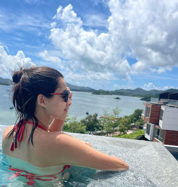 適逢炎熱的夏天,Lisa在個人社交網分享自己在酒店泳池游泳的照片,一向保守的她罕有曬出自己的性感泳裝,大曬身材。相中她穿著紅色比堅尼,清楚看見她的小蠻腰,可見她的健身有成。相中的她掛著甜美的笑容並配上陽光與藍天非常好看。她留言寫道:「週末快樂,終於迎來陽光普照的天氣」、「最適合游泳」。
