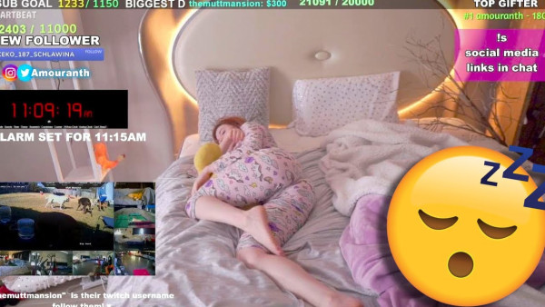 觀眾們可以透過捐款播放通知或音樂,甚至有人會播放噪音或汽車喇叭聲去吵醒她。Amouranth甚至自爆比起在Twitch直播或Onlyfans拍片,粉絲們更喜歡看她睡覺。儘管「直播睡覺」大受歡迎,但她卻不打算每天都直播睡覺,因為這需要特別安排和規劃,執行上來相當麻煩。