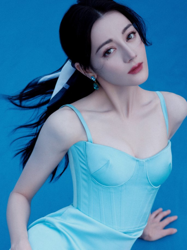 迪麗熱巴出席活動時穿上一身水藍色超低胸晚裝,大騷雪白的肌膚和極致纖腰曲線。