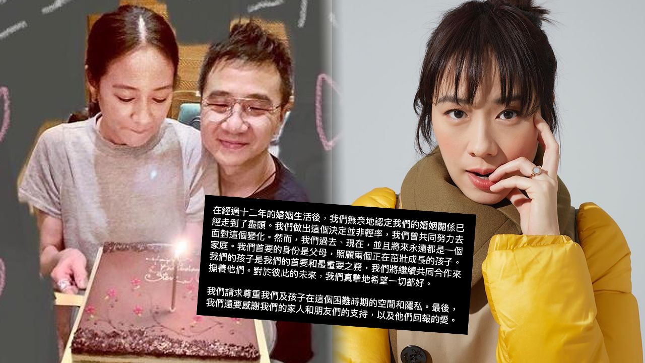 林嘉欣早前在IG突然發出中英聲明,宣布與老公袁劍偉離婚結束12年婚姻。她表示二人做出這個決定並非輕率,亦曾共同努力去面對這個變化,但最後無奈地認定這段婚姻關係已經走到了盡頭。她日前出席活動時首度回應離婚事件,直言「家家有本難念的經,我哋捱唔到」,雖然避談掟煲費傳聞,但就表示最艱難的時刻已經過去了,離婚並不是世界末日。