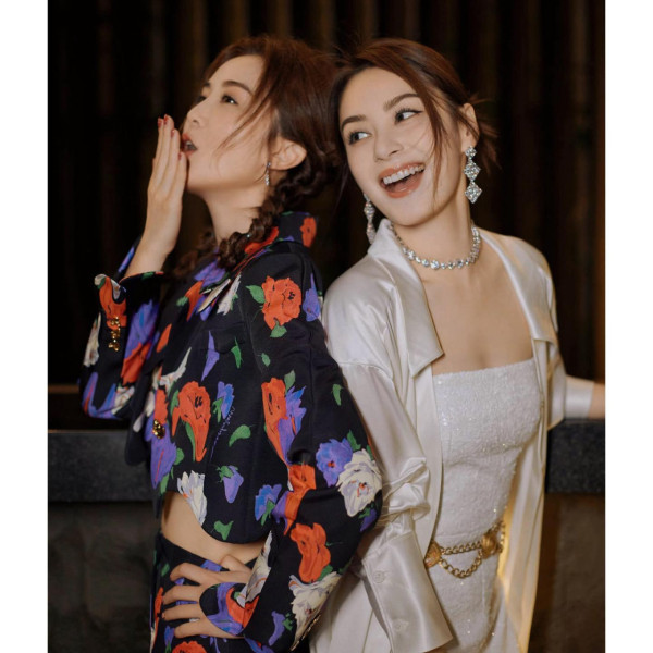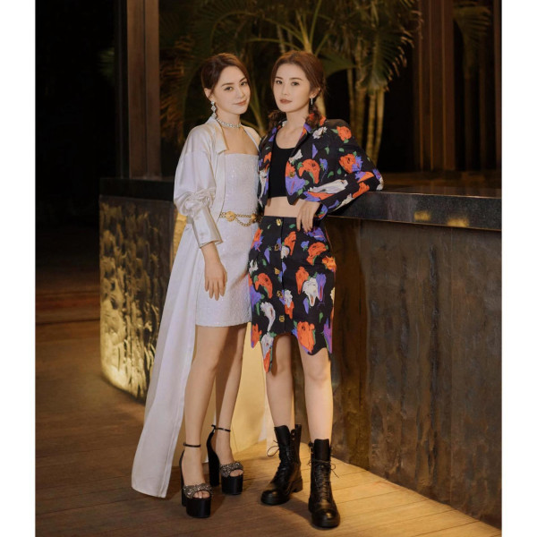 自Twins 2001年成軍以來,阿Sa和阿嬌一直保持深厚友情,去年二人更因參與內地真人騷《乘風破浪》人氣更上一層樓。阿Sa近日在IG上分享了多張雙人穿搭照,相片中可見阿Sa穿著黑色花花套裝,搭配露腰的Bra Top,露出黑色小背心和白皙肌膚。而阿嬌則穿著白色低胸套裝,展現出高貴氣質同時大曬身材。二人在路邊開心地大笑,微微彎腰的角度令阿嬌身材更有睇頭。