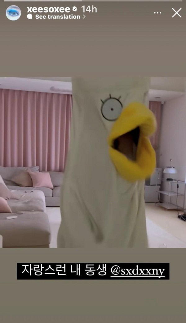 其實早於不久前,已經有網民爆料韓韶禧有一位相差一歲的妹妹,同樣擁有精緻五官和獨特的氣質。而韓韶禧在早前限時動態中分享了一張奇怪人偶服的照片,更以幽默的方式寫下「讓我自豪的妹妹」為妹妹加持,引起不少網民好奇心,紛紛關注她的帳號。