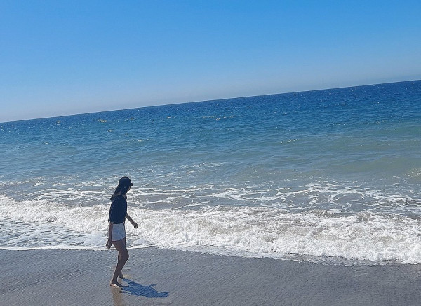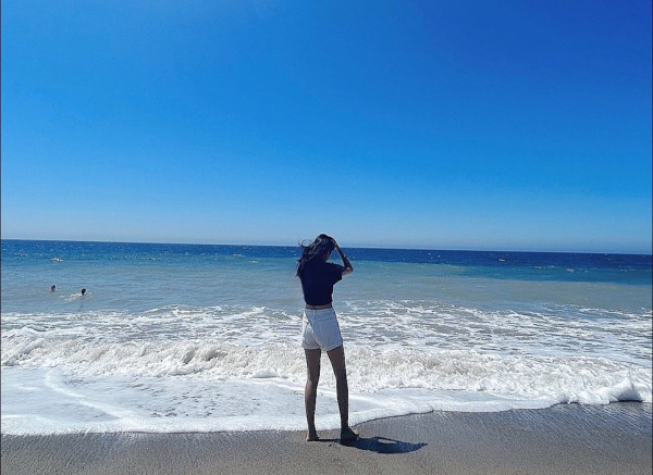 近日Irene再度在IG上曬出了自己在加州海灘的背影照,穿著T恤和白色短褲,露出修長的纖腰和白皙的長腿,完美地繼承了母親的身材。金喜善也對女兒的照片作出了回應,留言寫下「我羨慕大海」,引來不少網民熱烈留言,表示期待Irene未來能夠像媽媽一樣在影壇綻放光彩。