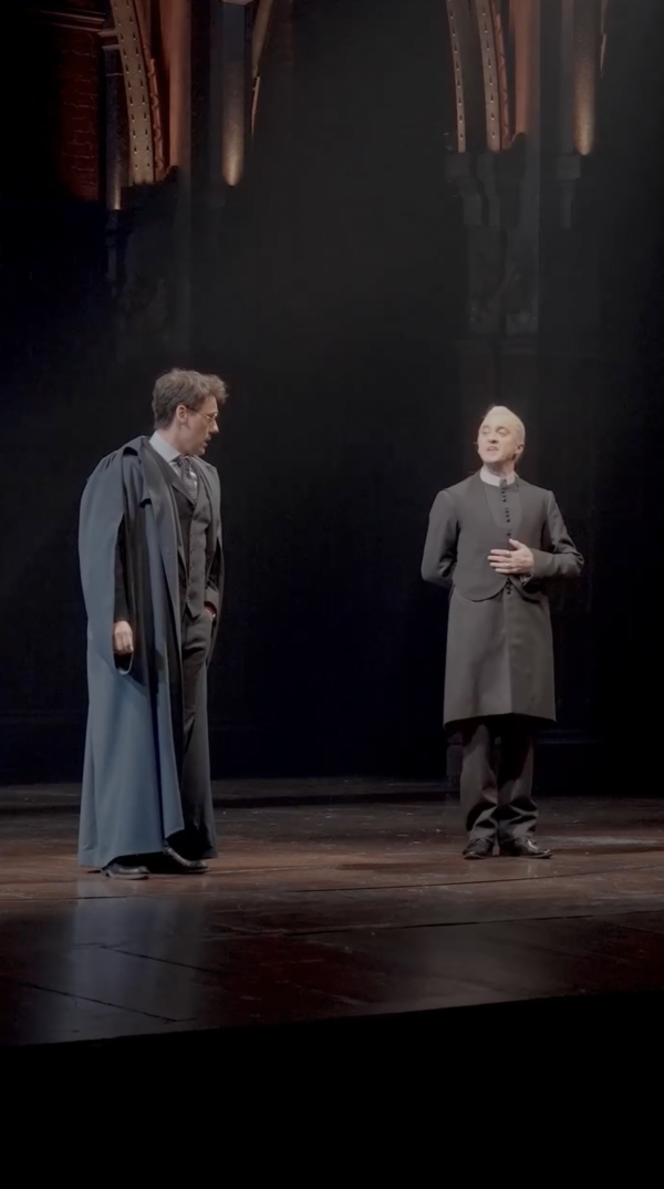 舞台劇《哈利波特—被詛咒的孩子》早前於紐約舉行,Tom Felton驚喜參演,再度將頭髮染成金色,重拾魔杖飾演「馬份」,他曾坦言重返霍格華茲,彷彿夢境成真,今次再扮演「馬份」的感覺截然不同,如今的「馬份」已成為爸爸,並與兒子「天蠍馬份」一同面對全新霍格華茲的冒險。最近,在《哈利波特》中飾演爸爸「魯休斯馬份」的演員Jason Isaacs就到了舞台探班,與兩位馬份家族成員合照﹐三代同堂的畫面令人驚訝,同時勾起當年出演電影時的回憶!