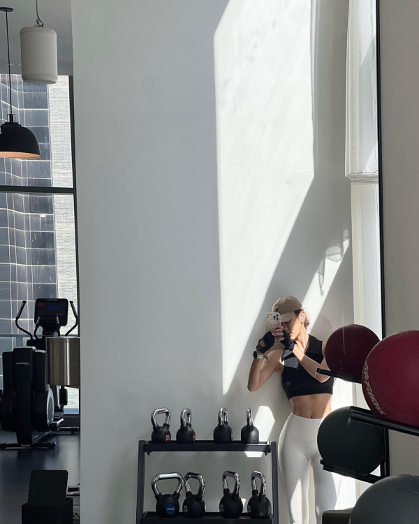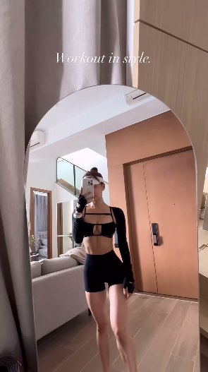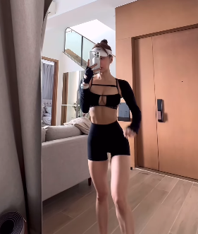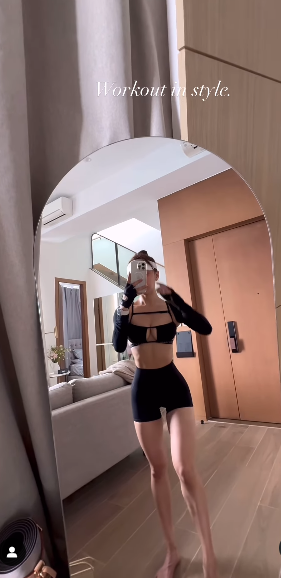 Dada在IG寫下留言「 Workout in style.」。Dada就算連做運動,都要確保裝備見得人。見到她以一身黑色運動bra top搭配一條超級貼身運動短褲,大曬豐滿上圍、一雙長腿同螞蟻腰,運動裝竟然比起泳衣更「少布」,火辣身材完美呈現。同時又見到Dada家中的設計非常有質感、又有樓梯,相信就是她去年豪花超過2000萬、位於大角咀新樓盤的頂層特色戶。