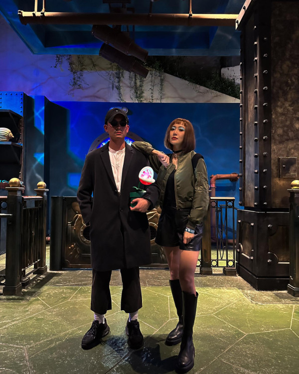 適逢萬聖節,朱智賢與周志康齊齊扮成《回魂夜》中的周星馳與莫文蔚,重現經典一幕。朱智賢不但大晒美腿,又配合角色搽上藍色眼影,重現「牛眼淚」。
