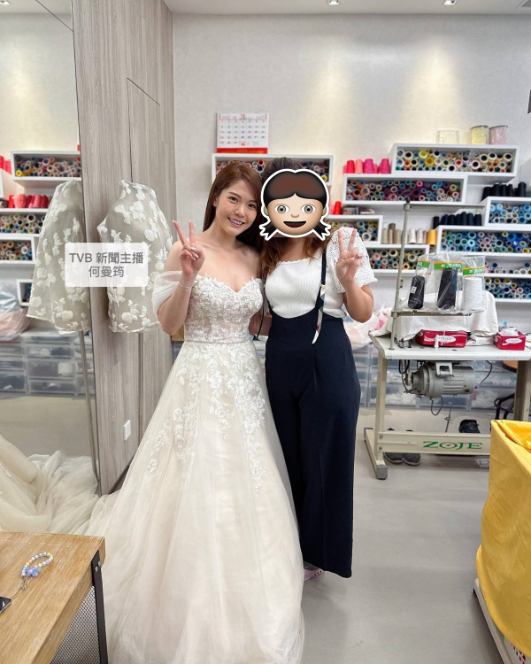原來照片是來自Agatha的婚紗店,老闆在Facebook寫下留言,「今日特別嘉賓 TVB 新聞主播及記者 何曼筠 Agatha Homankwan 多謝妳喜歡及選擇我們的婚紗。」