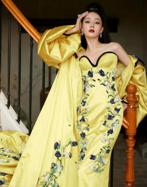 迪麗熱巴日前出席活動穿上訂製禮服,這套鮮黃色的禮服配以藍白相間的花朵圖案,外搭同一色系的披肩,令人印象深刻。造型照一出立即引起網民熱議,不少網友紛紛稱讚她為「女帝」,更隨即登上微博上熱門話題。