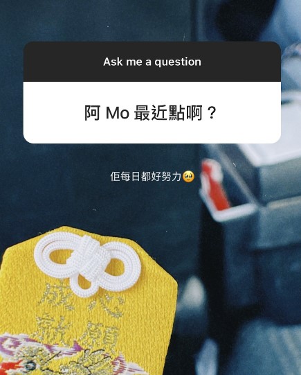 同時So Ching在問答中透露,阿Mo目前仍在醫院接受治療,而她則全心全意地支持和照顧他。對於他的進展,So Ching表示不便代替回答,呼籲粉絲繼續為阿Mo祈禱。面對網友對未來發展的提問,她坦言目前尚未考慮幕前工作的具體時間,對於推出唱片和嘗試演員工作的問題,她表示會一切順其自然,目前正努力裝備自己。