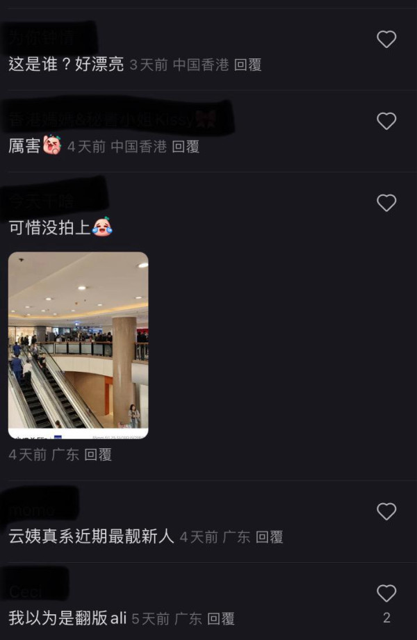 網民在小紅書上以「香港尖沙咀K11又遇到明星Dior活動」為題,分享了雲浩影身穿白色連身裙的照片,並指她超有氣質,還表示「這個明星我也不認識,但膚白貌美,身材好,笑容燦爛!」,隨即有其他網民留言大讚「真的好漂亮!」、「以為是翻版李佳芯!」、「真的是近期最美新人!」