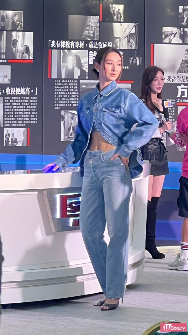 而日前《新聞女王》一眾演員到荷里活商場出席宣傳活動,當日高海寧一身牛仔穿搭,下身的直筒牛仔褲配以上身牛仔外套,而她亦巧妙地只扣上頸的兩顆鈕扣,微微露出腰間,造型瞬間變得時尚。而當她準備拍照時,有在場的人捕捉到她調整上衣時露出的腹肌狀態,緊緻無贅肉的纖腰令人驚嘆,相信她依然是那位身材曼妙的高海寧!