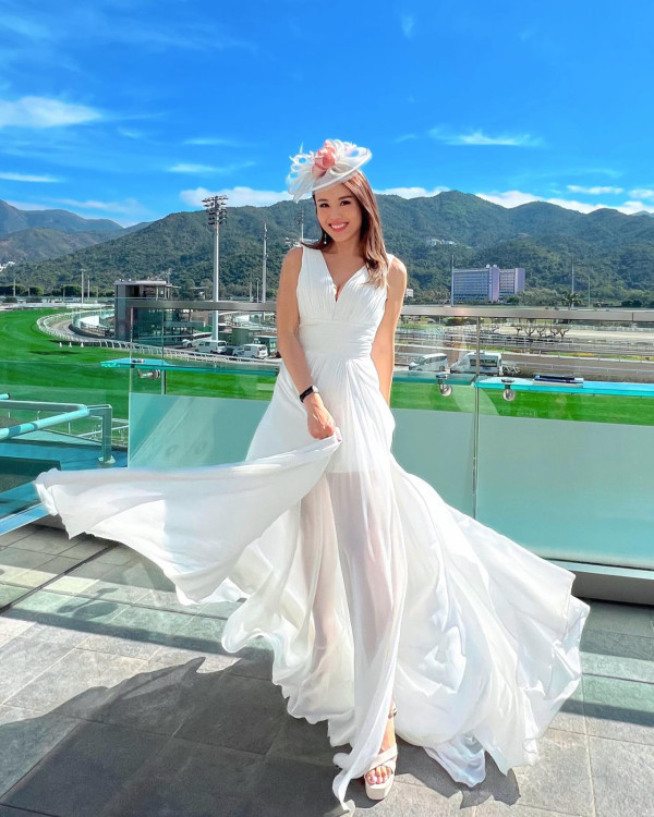 有索爆港姐靚媽之稱的楊洛婷(Rabeea)離巢TVB後專注司儀工作,日前她現身馬場為手錶品牌活動擔任主持人,一身白色低胸長裙現身,同場亦有2018年亞軍港姐鄧卓殷,但都不及Rabeea 5吋事業線夠搶鏡,盡晒Fit到漏身形!