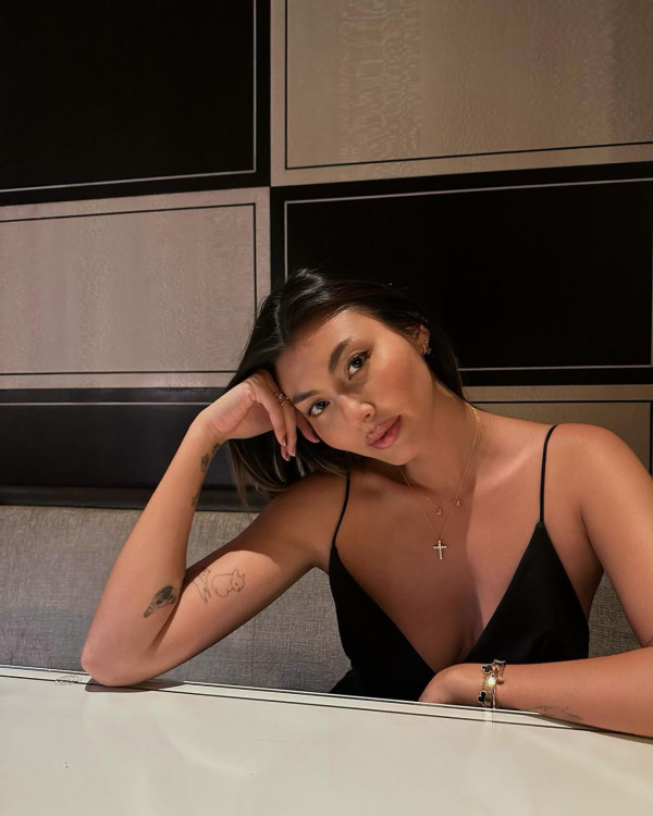 王麗嘉經常在社交平台分享火辣靚相,IG粉絲數更高達8.7萬人,人氣持續攀升。曾經在IG分享真空上陣、水着照、半祼照等超大膽相片的她,日前由性感照放題轉為低調衣著,只穿上一條簡單的黑色低胸吊帶裙。但魔鬼在細節,細看依然保持高度性感。